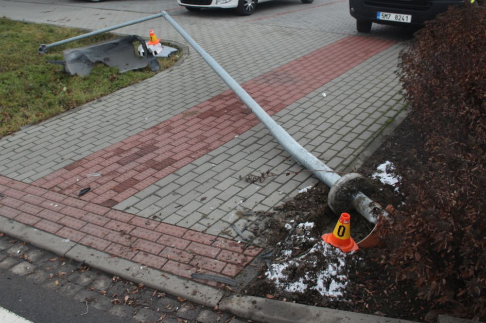 „Třiasedmdesátiletý řidič se nevěnoval plně řízení a při opouštění křižovatky do ulice Okružní vyjel vpravo mimo komunikaci. Tam projel nízkým okrasným křovím a narazil do sloupu veřejného osvětlení přechodu pro chodce. Ten byl nárazem vozidla poražen. Ke zranění osob při dopravní nehodě nedošlo. Výše způsobené hmotné škody byla předběžně vyčíslena na 50 tisíc korun. Alkohol u řidiče policisté vyloučili provedenými dechovými zkouškami. Jeho přestupek vyřešili uložením pokuty v příkazním řízení,“ uvedl policejní mluvčí František Kořínek.