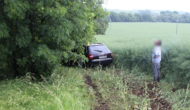 Řidič jel příliš rychle. Na mokré silnici dostal smyk a s autem skončil v poli