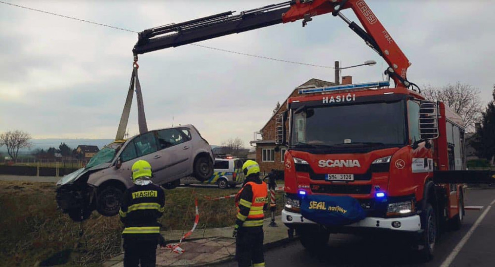 „Nový speciál značky Scania ze stanice Prostějov byl dnes využit při vyproštění osobního vozidla po dopravní nehodě Těšeticích. Automobil prorazil zábradlí a skončil v potoce. Asistovali jsme také zdravotníkům při ošetřování dvou lehkých zranění," sdělil Zdeněk Hošák od hasičského sboru