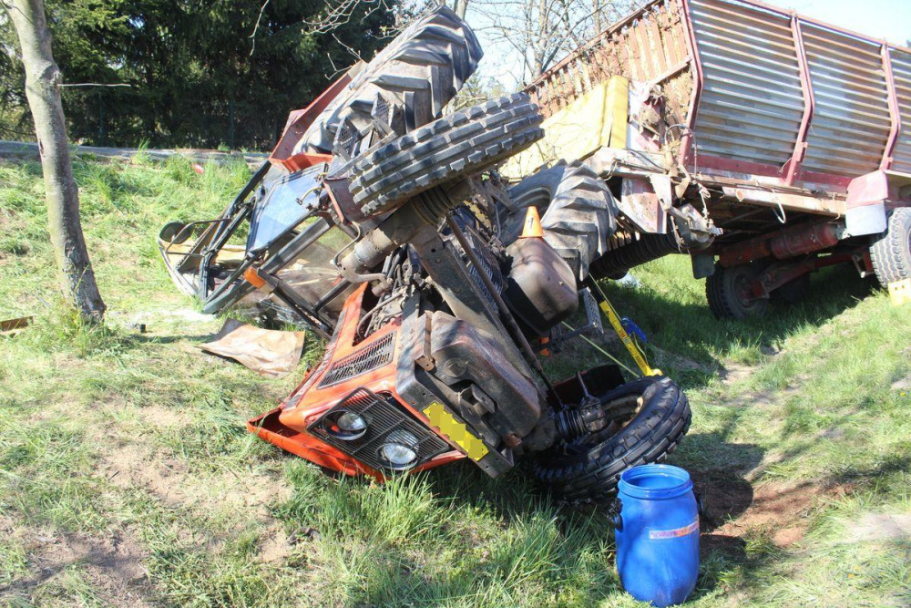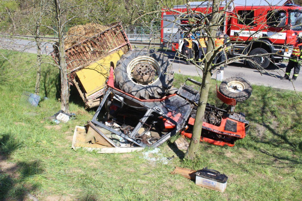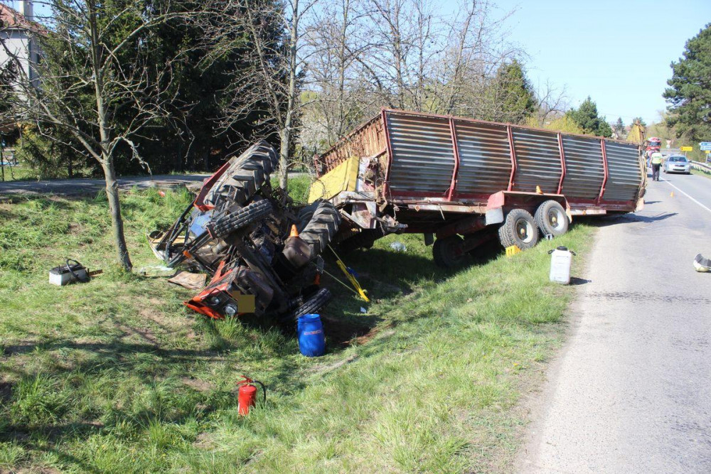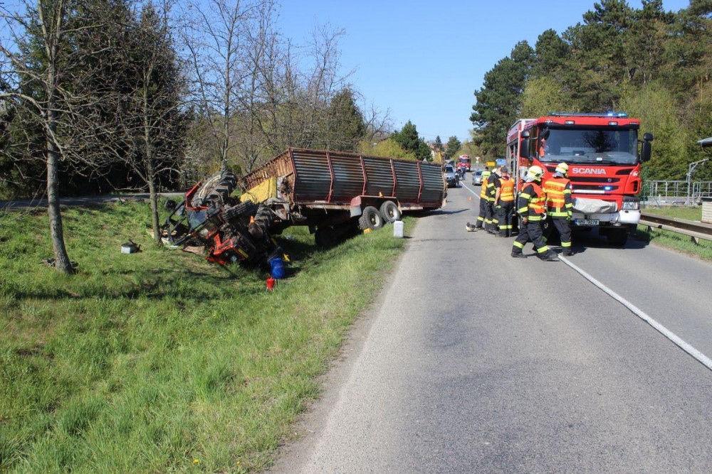 Ve středu odpoledne havaroval traktor s přívěsem na rovném úseku silnice v obci Plumlov. Řidič vjel z neznámých důvodů mimo vozovku, kde narazil do příkopy a vozidlo se převrátilo na levý bok. V pod traktoru museli zaklíněného řidiče vyprošťovat hasiči.