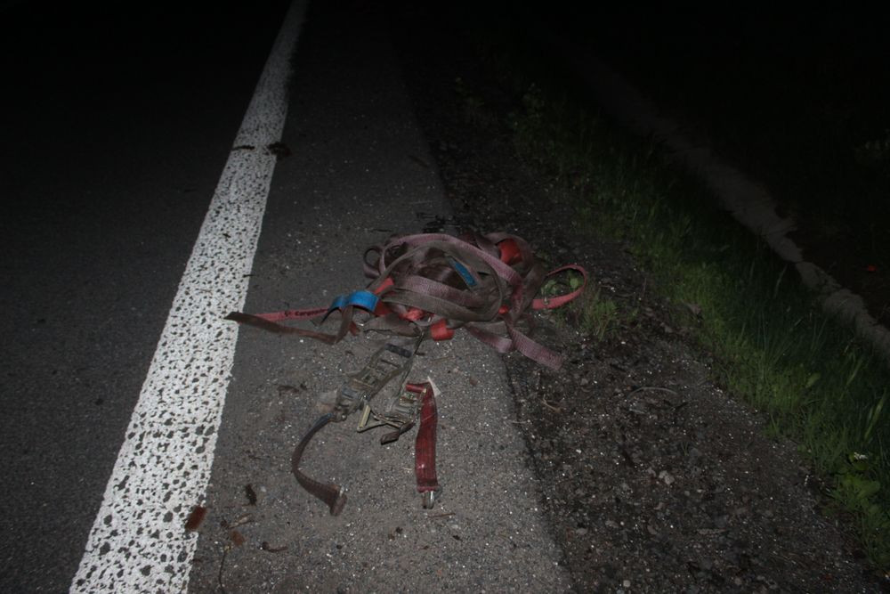 Upínací pásy zůstaly ležet na komunikaci za mírným horizontem, takže překážka byla velmi špatně viditelná. Z toho důvodu postupně na pásy najel nejprve kamion s návěsem, za ním jedoucí sportovní automobil značky Nissan a další kamion s návěsem.