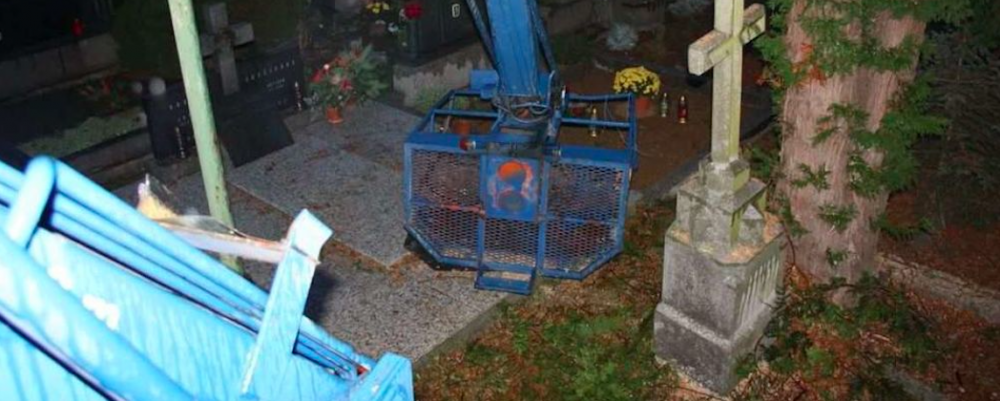 Ve středu 8. listopadu před druhou hodinou odpolední došlo b obci Rozstání na Prostějovsku k pádu zvedací plošiny mezi hroby místního hřbitova. Při pádu se zranili dva muži.