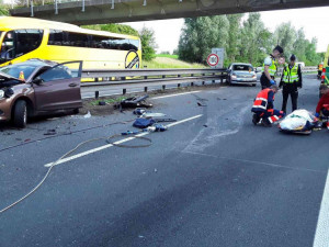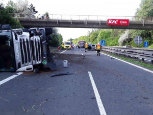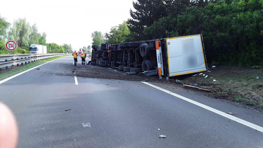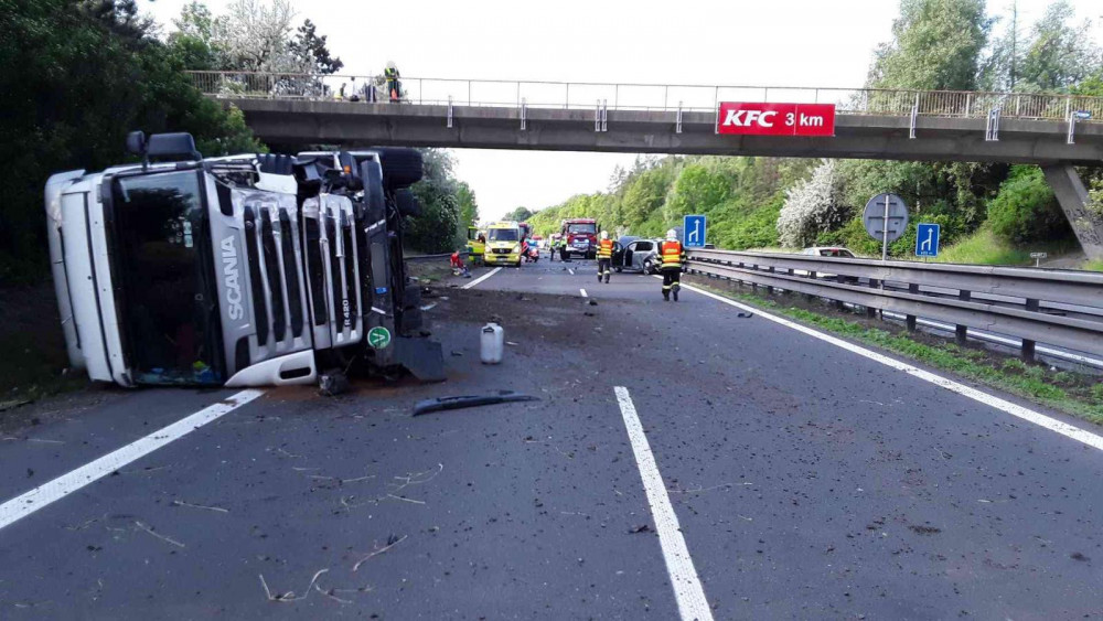 „Na situaci již řidič nestihl dostatečně zareagovat a narazil do posledních dvou osobních automobilů stojících v koloně. Po střetu vozidel vyjel nákladní automobil vpravo mimo vozovku, kde se v příkopu i s návěsem naloženým papírem převrátil na pravý bok,“ popsal nehodu policejní mluvčí František Kořínek.