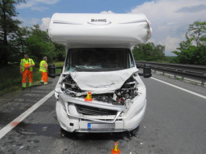 Nehoda se stala včera v jednu hodinu odpoledne na dálnici D46 ve směru od Prostějova na Vyškov. Řidič obytného vozu Fiat v pravém jízdním pruhu nedodržel bezpečnou vzdálenost za nákladním autem DAF, které jelo před ním. Řidič nákladního auta začal brzdit a jelikož na tuto situaci nedokázal řidič obytného auta reagovat, došlo ke střetu.