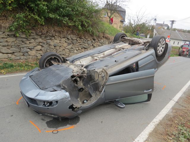„Po projetí zatáčkou vyjela s vozem značky Škoda Superb mimo silnici a narazila do kamenné zídky. Přitom došlo k odlomení předního kola a následnému přetočení vozu na střechu. Na vozidle vznikla škoda 150 000 korun," řekla policejní mluvčí Tereza Neubauerová.