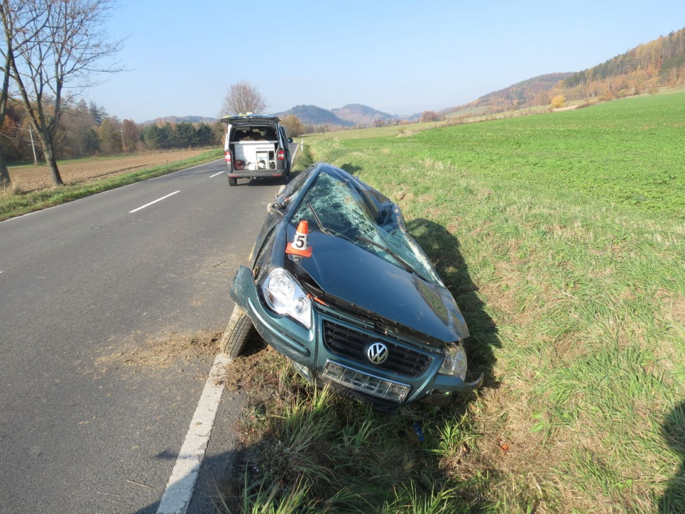 „Podle prvotního šetření tam s vozem Volkswagen Polo havaroval pětapadesátiletý řidič, který při projíždění táhlé levotočivé zatáčky ve směru jízdy na Bratrušov pravděpodobně nepřizpůsobil rychlost jízdy zejména stavebnímu a dopravně technickému stavu pozemní komunikace a svým schopnostem. Dostal smyk, který se mu nepodařilo vyrovnat. S vozem vyjel vpravo mimo silnici, narazil do stěny travnatého příkopu a poté do pole, kde se vozidlo přetočilo přes střechu a skončilo opět v příkopu. Při havárii se zranili dva lidé," řekla policejní mluvčí Jiřina Vybíhalová.
