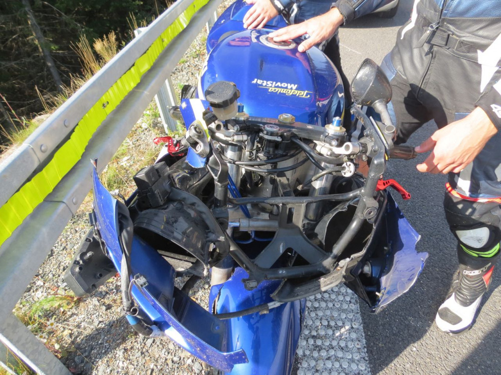Motorkář v důsledku nepřiměřené rychlosti nezvládl projet ostrou pravotočivou zatáčkou ve stoupání. Tam dostal smyk a přejel do protisměru, kde jeho jízda skončila nárazem do svodidel. Mladík utrpěl vážné zranění a byl převezen do nemocnice v Jeseníku. Odtud byl pak letecky transportován do olomoucké nemocnice.