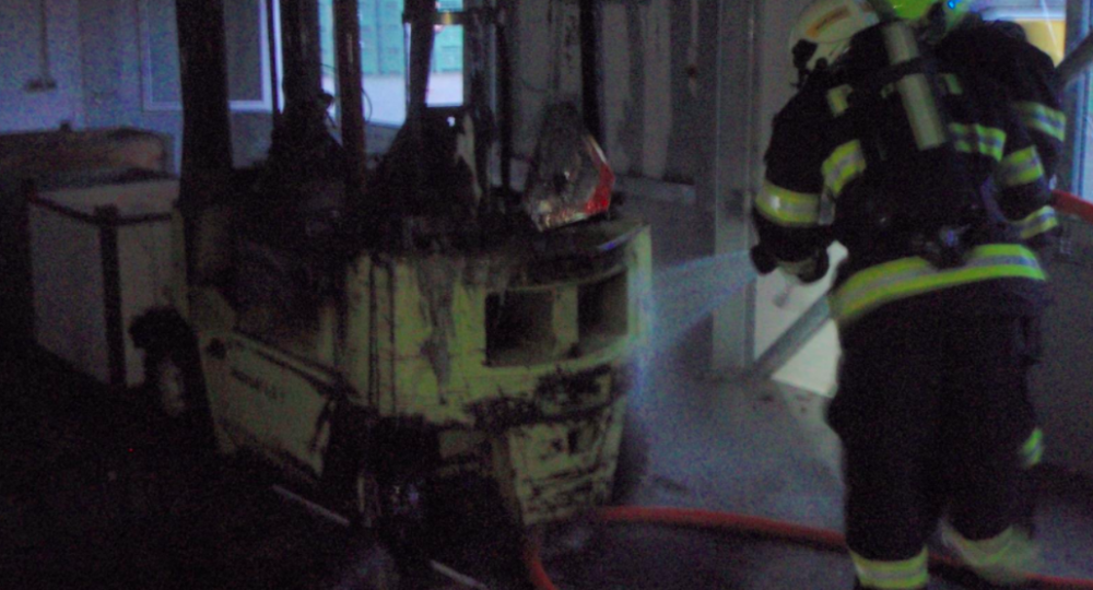 „V zakouřené hale nalezli hasiči hořící vysokozdvižný vozík. Velmi rychle se jim podařilo zamezit výraznému rozšíření, i přes to ničivé plameny zcela zničily manipulační stroj a také halovou konstrukci," uvedl mluvčí hasičů Zdeněk Hošák.