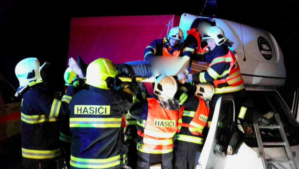 V době našeho příjezdu zůstala ve vozidle jedna ze zmiňovaných zraněných osob a to v prostoru pro spaní v horní části kabiny vozidla. Po prvotním zajištění posádkou zdravotníků provedli hasiči její vyproštění a transport do sanitního vozidla," řekl mluvčí hasičů Zdeněk Hošák.
