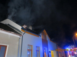 K požáru došlo po zahoření přizděného dřevěného trámu do komínového tělesa. Majitel předběžně vyčíslil škodu na 300 tisíc korun.