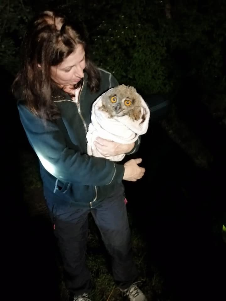 Záchrana výra byla úspěšná. Mládě poputuje do záchranné stanice k rekonvalescenci