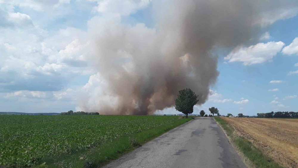 Štítky požár, strniště, pole, Olomoucko