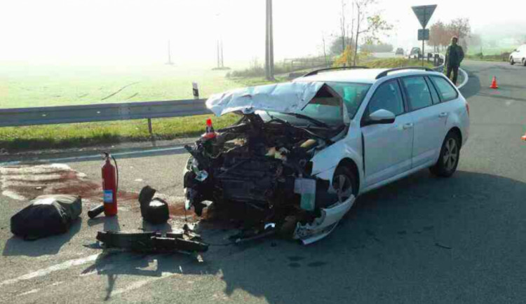 Na hlavním tahu do Zábřehu se čelně střetla dvě vozidla, hasiči museli zraněné pasažéry vyprostit