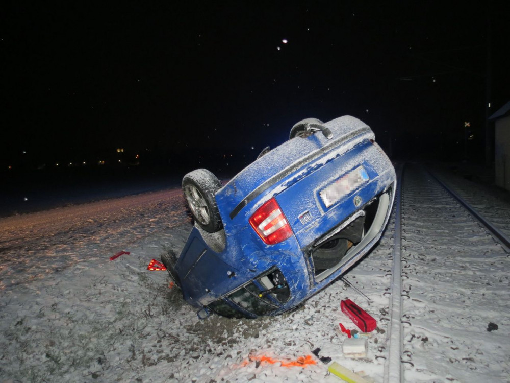 Řidička s autem vyjela vlevo mimo silnici, kde narazila do značky a následně se s autem přetočila na střechu. To zůstalo ležet v bezprostřední blízkosti železniční trati. „Havárie se naštěstí obešla bez zranění. Případné ovlivnění řidičky alkoholem bylo vyloučeno provedenou dechovou zkouškou. Škoda na vozidle byla předběžně odhadnuta na 30 tisíc korun, na poškozené dopravní značce na 3 tisíce korun. Přestupek motoristky vyřešili policisté uložením pokuty ve výši dva tisíce korun,“ dodala mluvčí policie Jiřina Vybíhalová.
