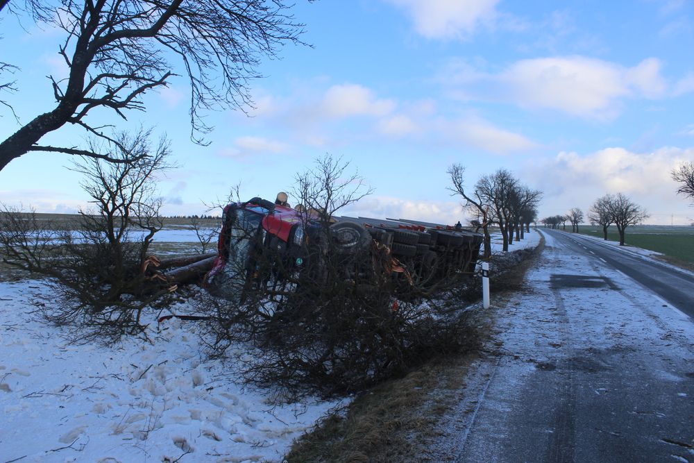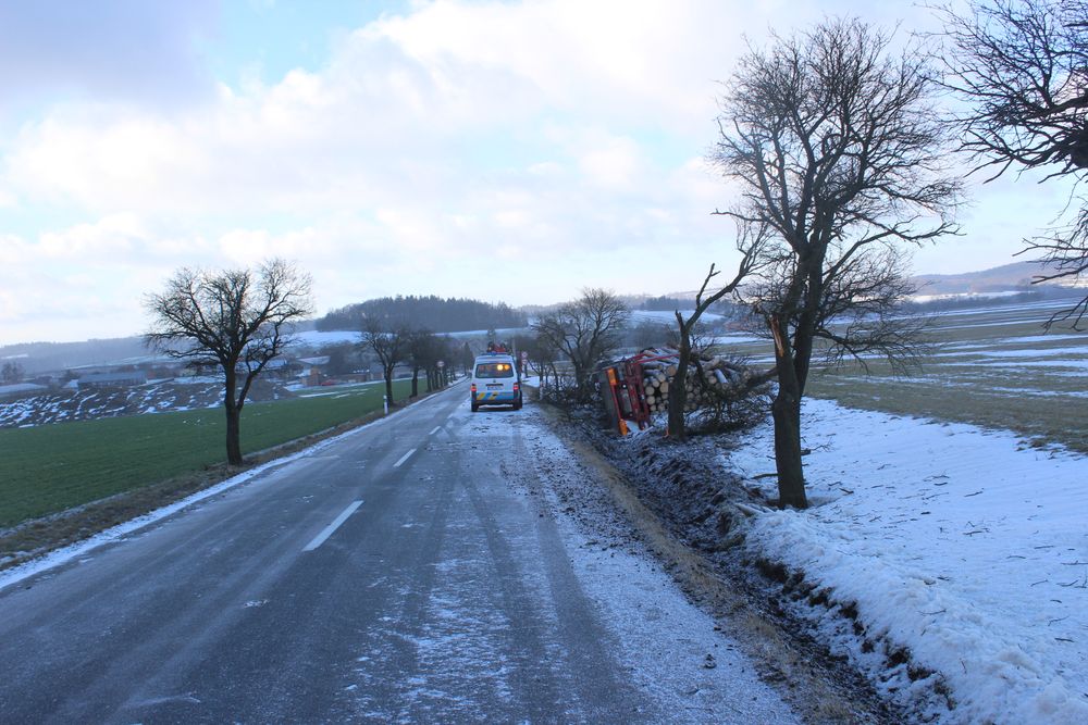 K nehodě tahače Scania s nákladem dřevěné kulatiny došlo v pátek 18. ledna 2019 v osm hodin ráno mezi obcemi Hvozd a Luká. Dvaapadesátiletý řidič se nevěnoval plně řízení a na rovné silnici sjel do příkopy, kde kamionem poškodil tři stromy a poté se převrátil na pravý bok.