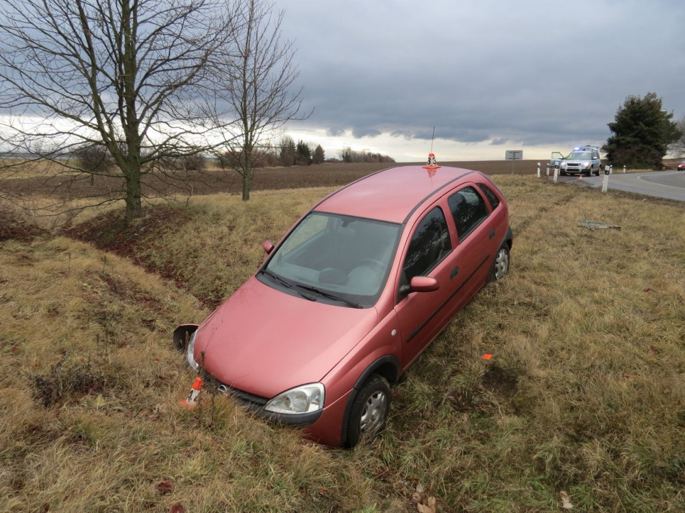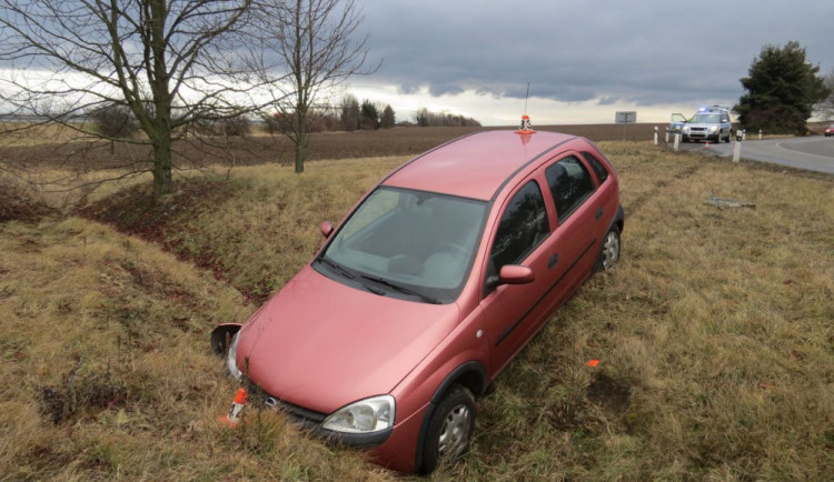 Opilý řidič nezvládl řízení v levotočivé zatáčce a skončil v příkopu