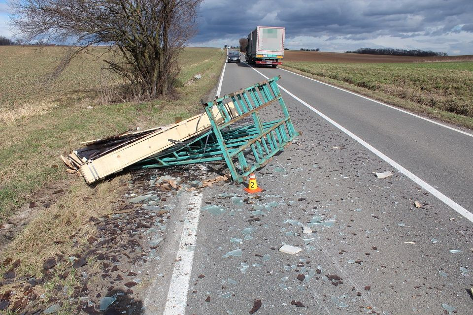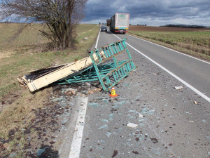 V úterý v poledne se stala nehoda v úseku mezi obcemi Topolany a Křelov. Řidiči nákladního auta tam z korby vozu vypadly skleněné tabule.