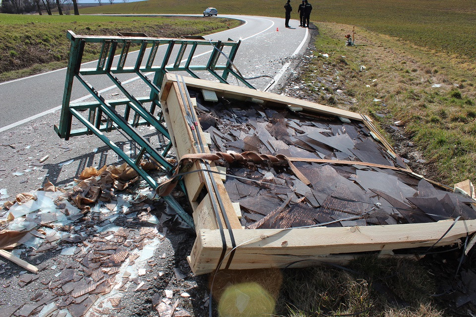 „Řidič v pravotočivé zatáčce nepřizpůsobil rychlost povětrnostním podmínkám, zejména silnému nárazovému větru. Došlo k uvolnění palety se skleněnými tabulemi, protržení opláštění a vypadnutí nákladu z nákladového prostoru na vozovku. Při nehodě nebyl nikdo zraněn," řekl policejní mluvčí Libor Hejtman.