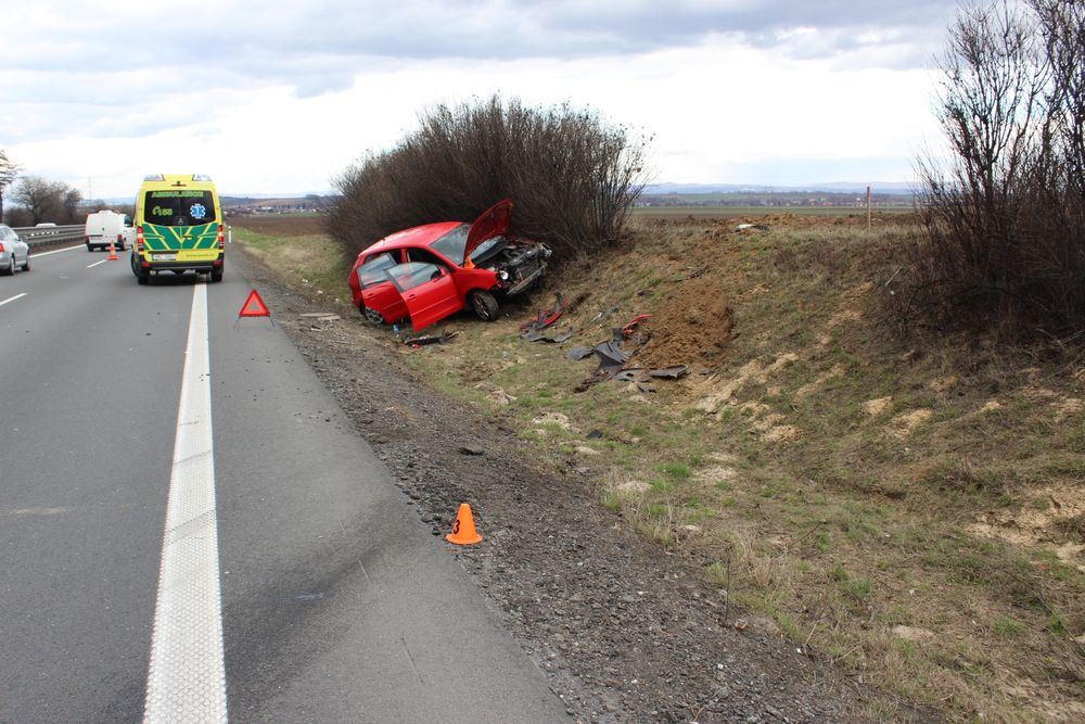 Ve čtvrtek 14. března došlo na 29. kilometru dálnice D46 ve směru na Olomouc k dopravní nehodě, při které skončilo auto v břehu vedle silnici. Jeho řidička se při nehodě zranila.