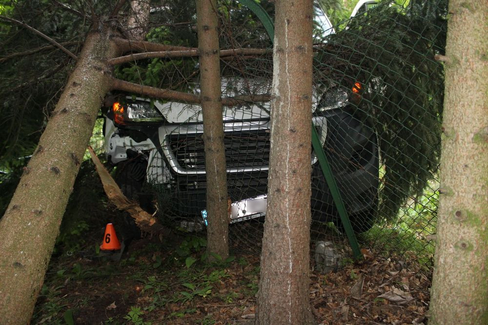 Devatenáctiletý řidič vlivem mikrospánku nezvládl řízení a s autem vyjel vpravo mimo silnici. Tam dodávka narazila přední částí do plotu s bránou a dvou smrků.