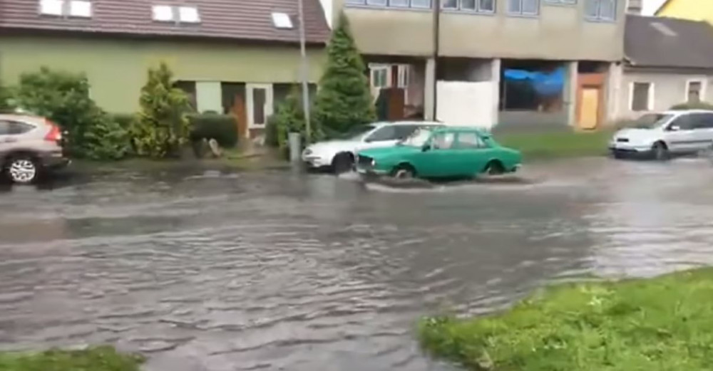 Dnes před polednem zaplavil silný déšť Dolní Novosadskou ulici v Olomouci. Podívejte se na video.