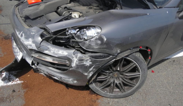FOTO: Na dálnici u Bělotína havarovalo Porsche. Chvíli poté do auta řidiče, který chtěl pomoct, naboural Fiat