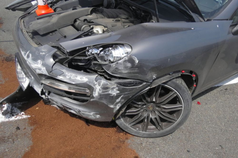 Řidič Porsche jel také po dálnici D48 ve směru od Bělotína na Polom. Poté co vjel na most, přes železniční trať a rybník, nejspíš nezvládl řízení a vyjel vlevo do středových kovových svodidel. Poté strhl řízení vpravo, kde narazil do betonových svodidel. Při havárii nebylo poškozeno jen auto, ale i silnice a její součásti. Dechová zkouška neprokázala přítomnost alkoholu. Spolujezdkyně byla z místa převezena do novojičínské nemocnice, kde byla ošetřena. Havárií vznikla škoda za 400 tisíc korun.