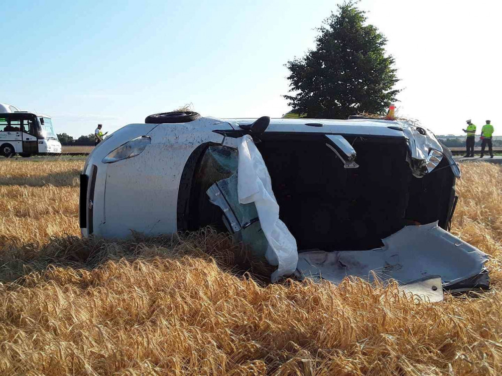 Dnes před tři čtvrtě na sedm ráno došlo na silnici mezi Kostelcem na Hané a Prostějovem k nehodě dvou osobních aut. Auta značek Fiat a Škoda jela obě ve směru od Kostelce na Hané a na rovném úseku silnice několik stovek metrů před Prostějovem došlo k jejich střetu. Fiat vyjel vpravo mimo silnici, dvakrát se přetočil přes střechu a zastavil v poli na levém boku. Škoda zůstala vlevo od silnice na souběžné železniční trati otočená proti směru jízdy.