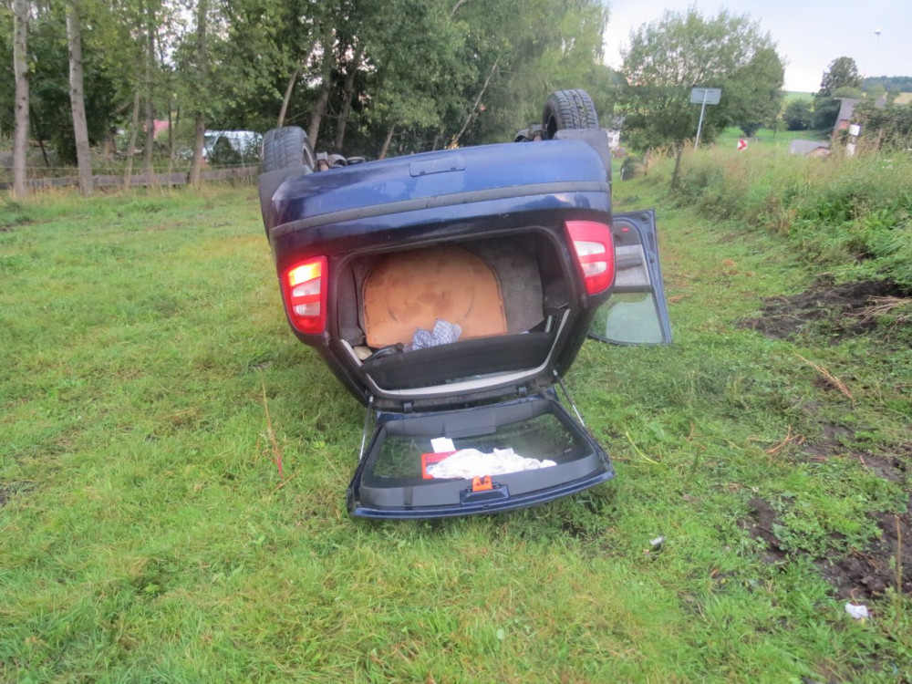 V neděli 1. září vpodvečer havaroval u Kopřivné na Šumpersku dvaadvacetiletý řidič. Nezvládl jízdu po mokré vozovce.