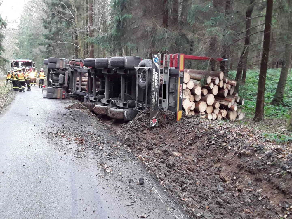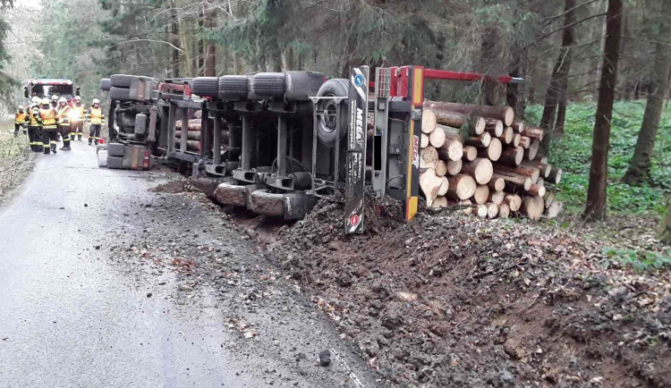 Dnes po desáté hodině vyjížděli koničtí a prostějovští hasiči k nehodě tahače s nákladem za Horní Štěpánov. Tahač se na úzké cestě převrátil do příkopu.