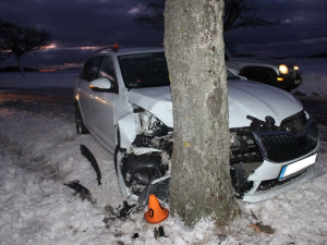 „Čtyřiačtyřicetiletý řidič nepřizpůsobil rychlost jízdy stavu a povaze vozovky a s vozidlem dostal smyk. V důsledku toho vozidlo vyjelo vlevo mimo komunikaci, kde čelně narazilo do stromu. Ke zranění osob při dopravní nehodě nedošlo. Výše způsobené hmotné škody byla předběžně vyčíslena na 150 tisíc korun," řekl policejní mluvčí František Kořínek.