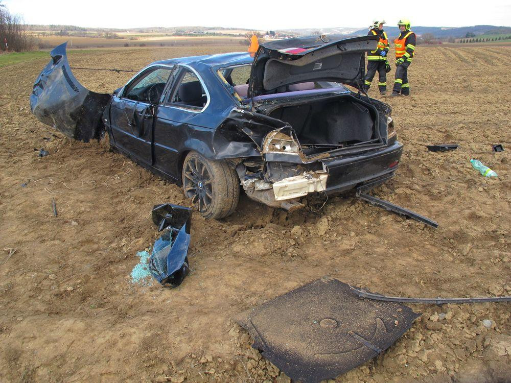 Dvacetiletý řidič ve voze BMW 323CI nezvládl řízení a v zatáčce dostal smyk. Auto vjelo na pole a několikrát se přetočilo. Muž byl převezen do nemocnice.