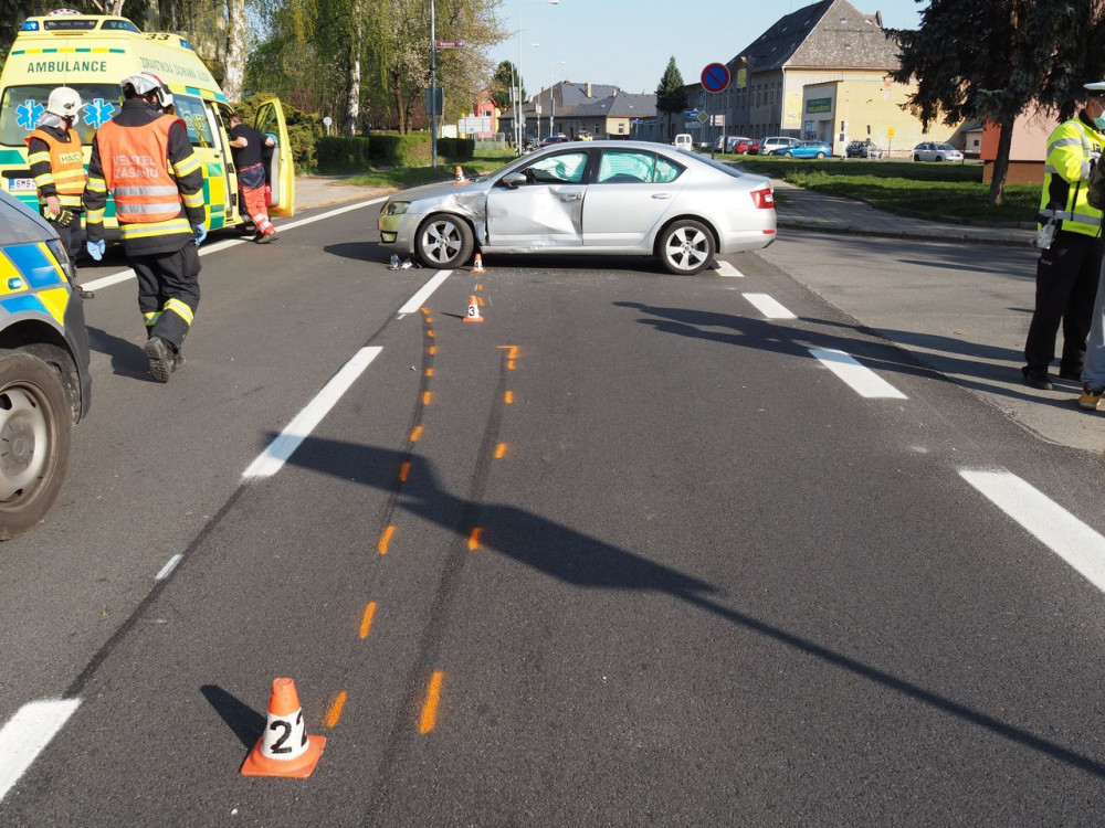 Při nehodě se zranil řidič motocyklu, kterému nedal přednost v jízdě řidič Octavie vjíždějící do křižovatky z Blanické ulice.