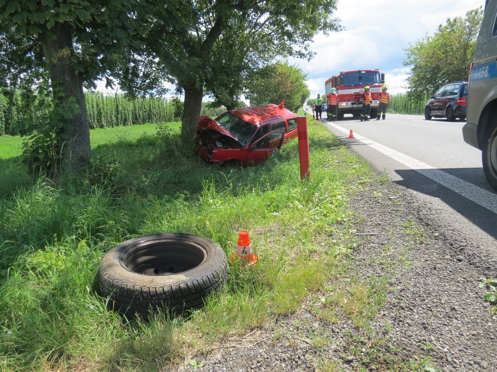 V neděli 12. července před polednem havaroval třiatřicetiletý řidič na silnici 55, která spojuje města Olomouc a Přerov. U obce Kokory se ale řidiči Renaultu Megane uvolnilo levé přední kolo. Řidič se vyjel vpravo mimo silnici a narazil do stromu. Se zraněním musel být převezen do nemocnice.