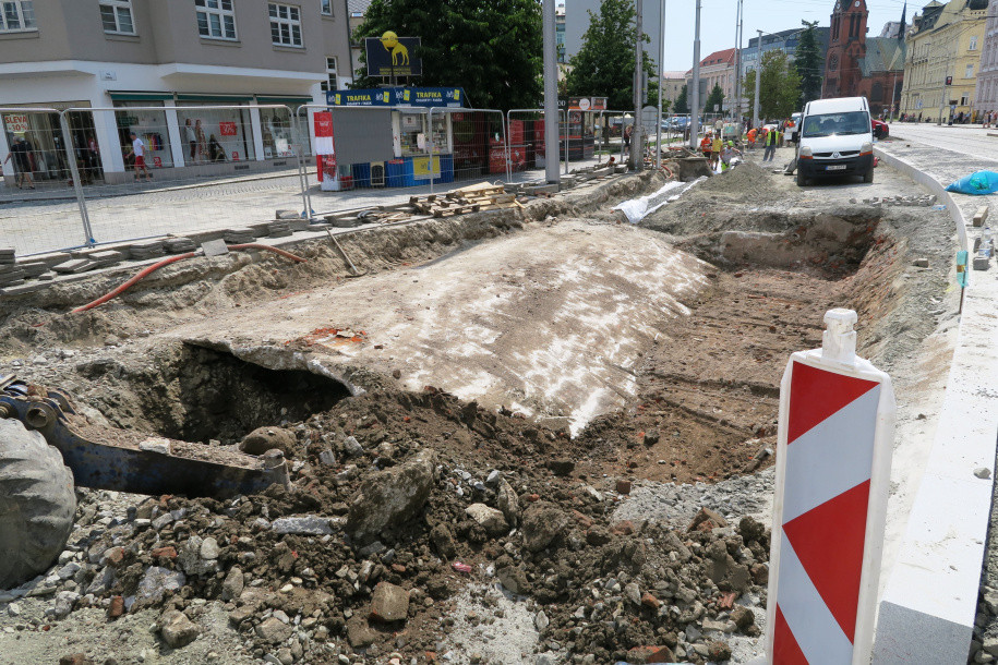 Na konci srpna skončila rekonstrukce křižovatky na náměstí Hrdinů. Opravovala se vozovka podél tramvajového ostrůvku a zajistila se stabilita trakčních stožárů. A během prací došlo i k jednomu překvapení.