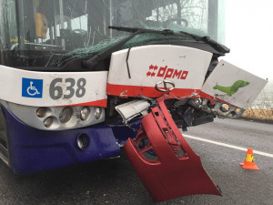Před osmou hodinou ranní se na trase autobusové linky 18 a 20 srazil autobus městské hromadné dopravy (linka č. 20) se dvěma osobními auty. Záchranná služba hlásí jedno těžké a dvě lehká zranění.