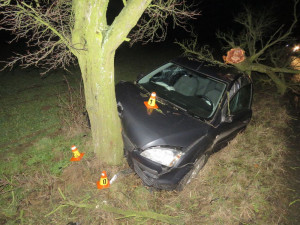 Ve středu před jedenáctou hodinou večerní nezvládl čtyřiatřicetiletý řidič svoje auto, když jel z Konice do Laškova. Vyletěl se svým autem ze silnice, porazil jeden listnatý strom a o druhý se zastavil. Policie mu následně naměřila přes 2 promile alkoholu v dechu...