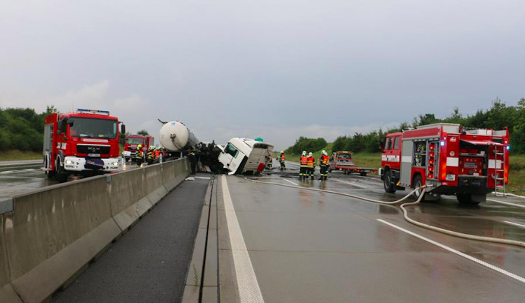 Nehoda se stala v sobotu před 14:00 na 311. kilometru dálnice v katastru Olšovce mezi Ostravou a Olomoucí. Šlo o polskou cisternu, kterou řídil český řidič. Cisterna dostala smyk a narazila do středových svodidel s betonovými zátarasy. Tahač se poté utrhl a začal hořet v motorové části. Oheň se na cisternu nerozšířil, hasiči ho rychle zlikvidovali. Ćásti betonových svodidel po nárazu dopadly do protisměru. I přes intenzivní brzdění do nich poté narazilo osobní auto, nikdo nebyl zraněn.