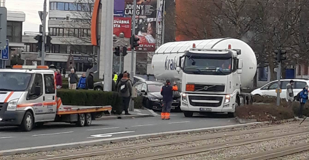 Dnes krátce po dvanácté hodině došlo na kruhovém objezdu na ulici Jeremenkova k nehodě cisterny a osobního automobilu. Nehoda se stala v okamžiku, kdy cisterna odbočovala z kruhového objezdu a osobní vůz ji začal objíždět. V současné době na místě provoz řídí policisté.