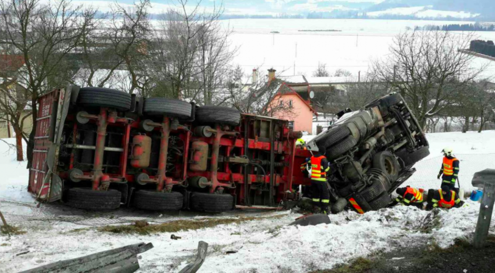 V úterý 20. února před devátou hodinou ranní havaroval v obci Štíty na Šumpersku kamion. Při nehodě se zranil řidič kamionu.