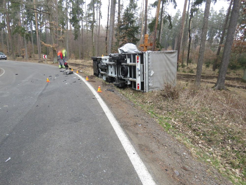 „Při rychlé jízdě směrem k obci Holubice v pravotočivé zatáčce přejel částečně do protisměru, kde se potkal s protijedoucím nákladním automobilem značky Opel. Čtyřicetiletý řidič nákladního automobilu se střetu pokusil zabránit najetím co nejblíže k pravému okraji komunikace. Přesto došlo k bočnímu střetu vozidel. Nákladní automobil po střetu vyjel vpravo mimo komunikaci, kde se převrátil na pravý bok," řekl policejní mluvčí František Kořínek.