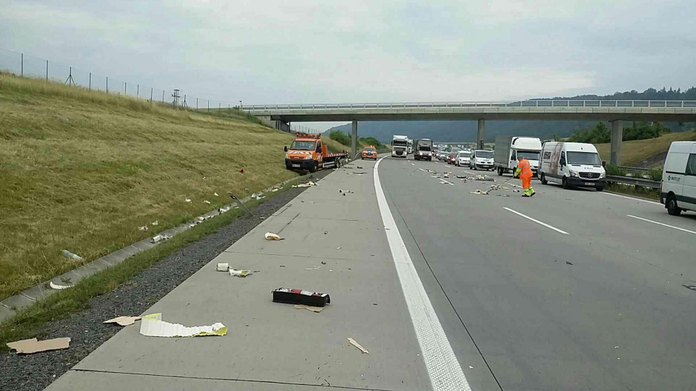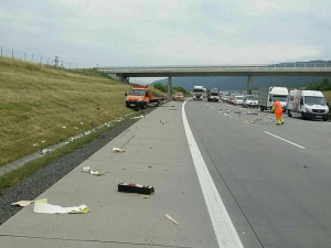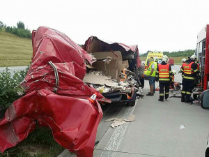Štítky nehoda, hasiči, dálnice, Přerovsko