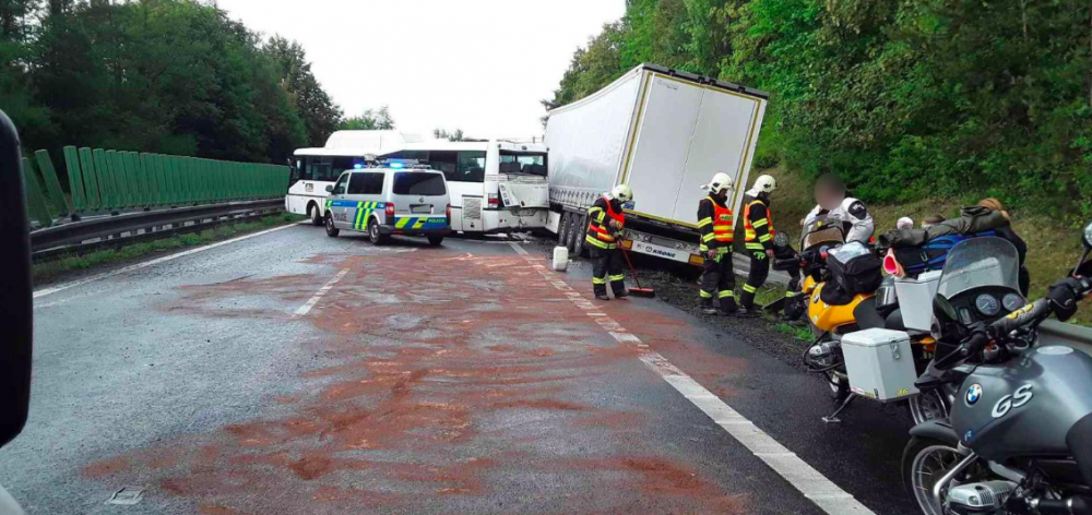 Při nehodách se lehce zranily dvě osoby, které byly sanitkou a vrtulníkem přepraveny do nemocnic. Šlo o řidiče cisterny a jednu cestující z autobusu. Škoda bude podle policie činit několik milionů korun. Na dálnici se před Prostějovem ve směru na Olomouc tvořily po nehodě kolony. V nich se stalo dalších šest nehod osobních automobilů, při kterých se nikdo nezranil.