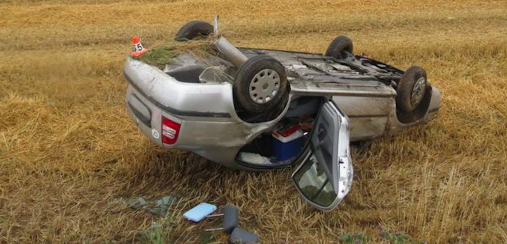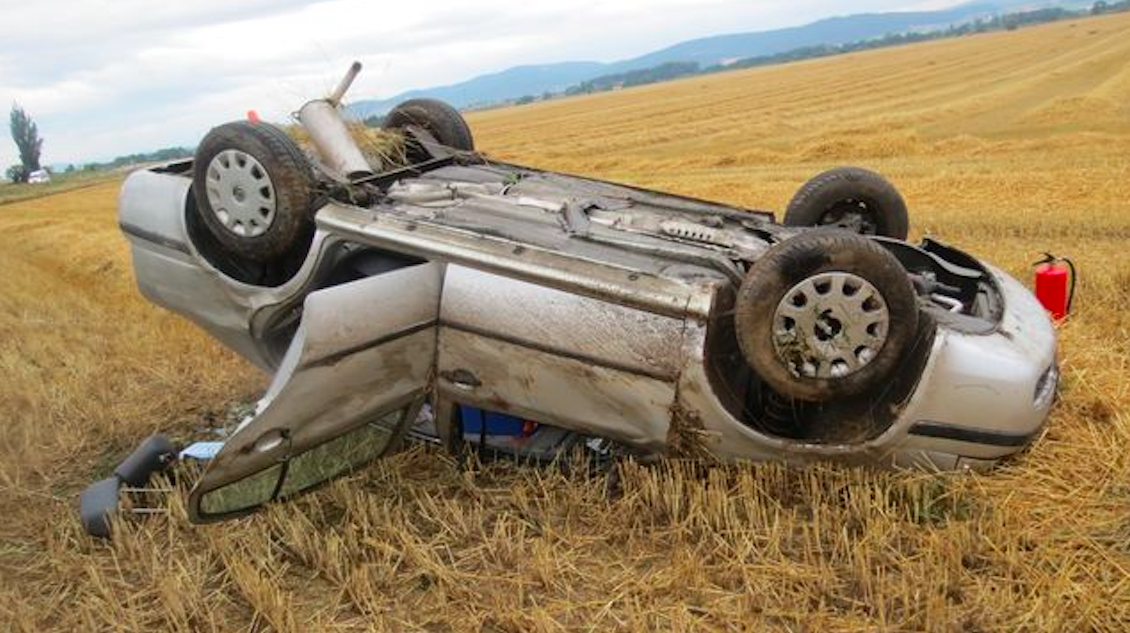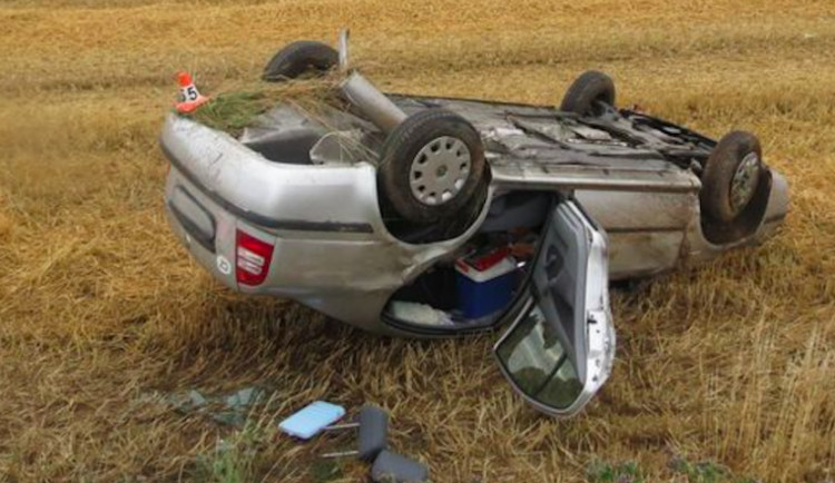Třiaosmdesátiletý řidič nezvládl řízení svého vozu, auto skončilo na střeše v poli