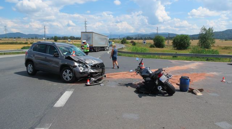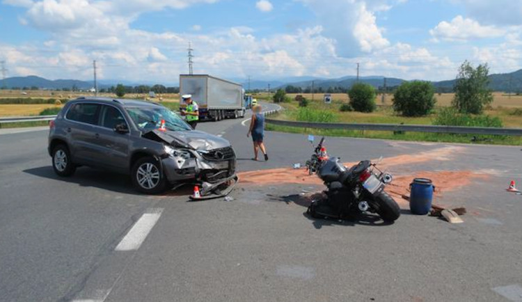 Řidička přehlédla při odbočování protijedoucího motorkáře, při střetu se zranil on i jeho spolujezdkyně
