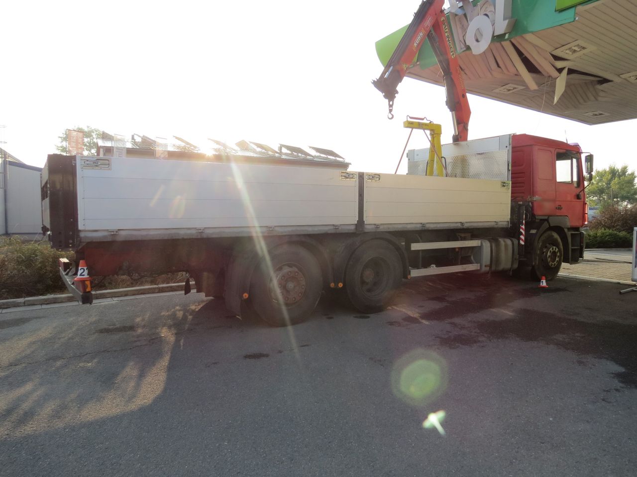 K velmi neobvyklé dopravní nehodě nehodě došlo dnes před sedmou hodinou ranní na čerpací stanici v Zábřehu. Řidič nákladního auta značky Man si nesložil hydraulickou ruku, kterou následně poškodil přístřešek nad výdejními stojany. Při nehodě nebyl nikdo zraněn. Škoda způsobená promáčknutím střechy byla předběžně vyčíslena na 50 tisíc korun. Na samotném voze škoda nevznikla, uvedla mluvčí policie Jiřina Vybíhalová.