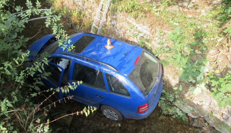 Devatenáctiletý řidič nezvládl se svou Fabií zatáčku, i s pasažéry a vozem skončil v potoce