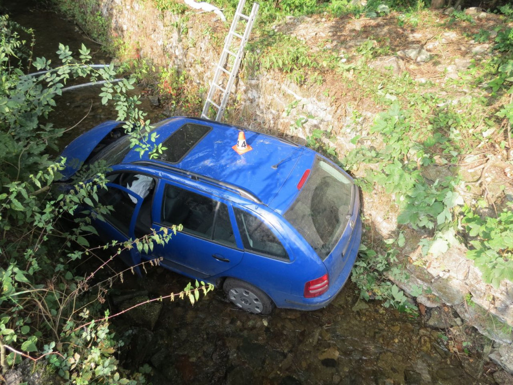 V sobotu 1. září došlo u Oskavy k dopravní nehodě Škody Fabia, kterou řídil devatenáctiletý řidič. S autem i pasažéry skončil v potoce.
