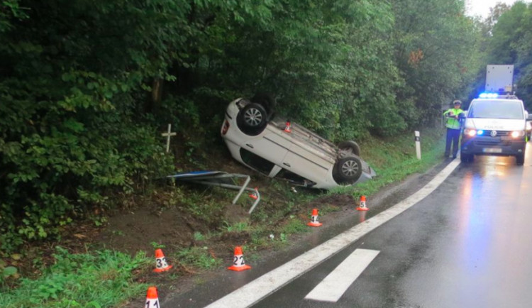 Na nebezpečné křižovatce Loučení dostal řidič se svým autem smyk, vozidlo se přetočilo na střechu