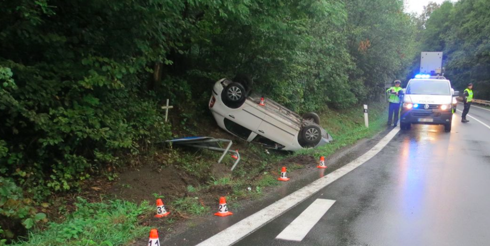 Na známé křižovatce Loučení mezi Chromčí a Kláštercem došlo k nehodě osobního auta, které dostalo na silnici smyk, narazilo do dopravního značení a převrátilo se na střechu.